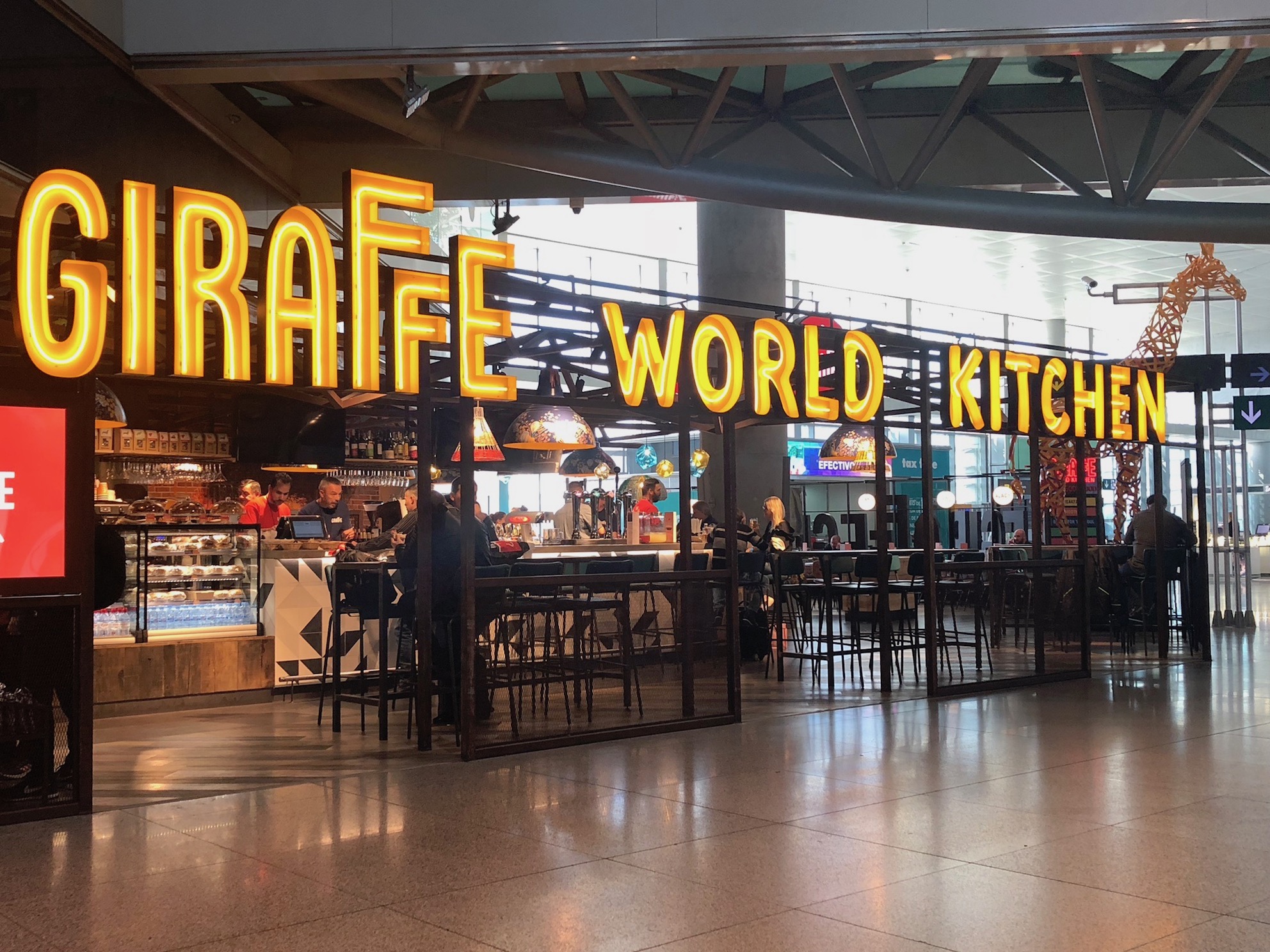 Giraffe StopBurgers, salads, curries, steak & chips, sandwiches, breakfast, brunch. Departures, passenger-only zone.